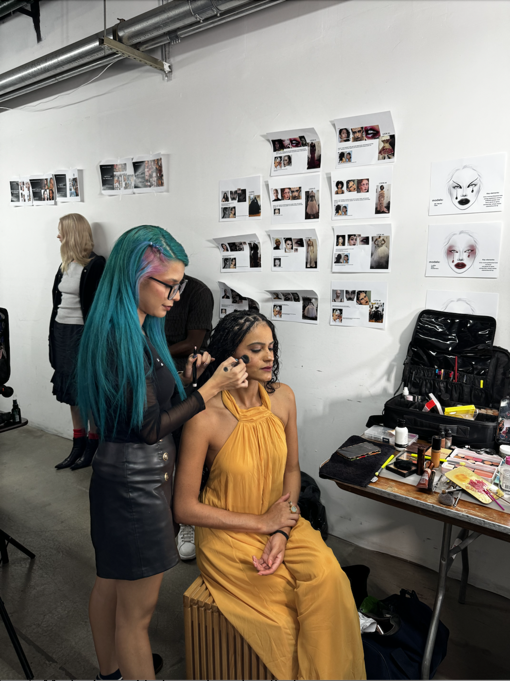 Backstage, I focused on capturing the artistry and energy of the show as it unfolded. I documented models in hair and makeup, garment try-ons, and the overall rhythm of the production team at work. I made our beauty brand sponsors a focal point in my content, such as Astrobabe’s easy paste-on eyeshadow, weaving them into the backstage narrative while editing and posting in real time to Ethereal’s Instagram stories.